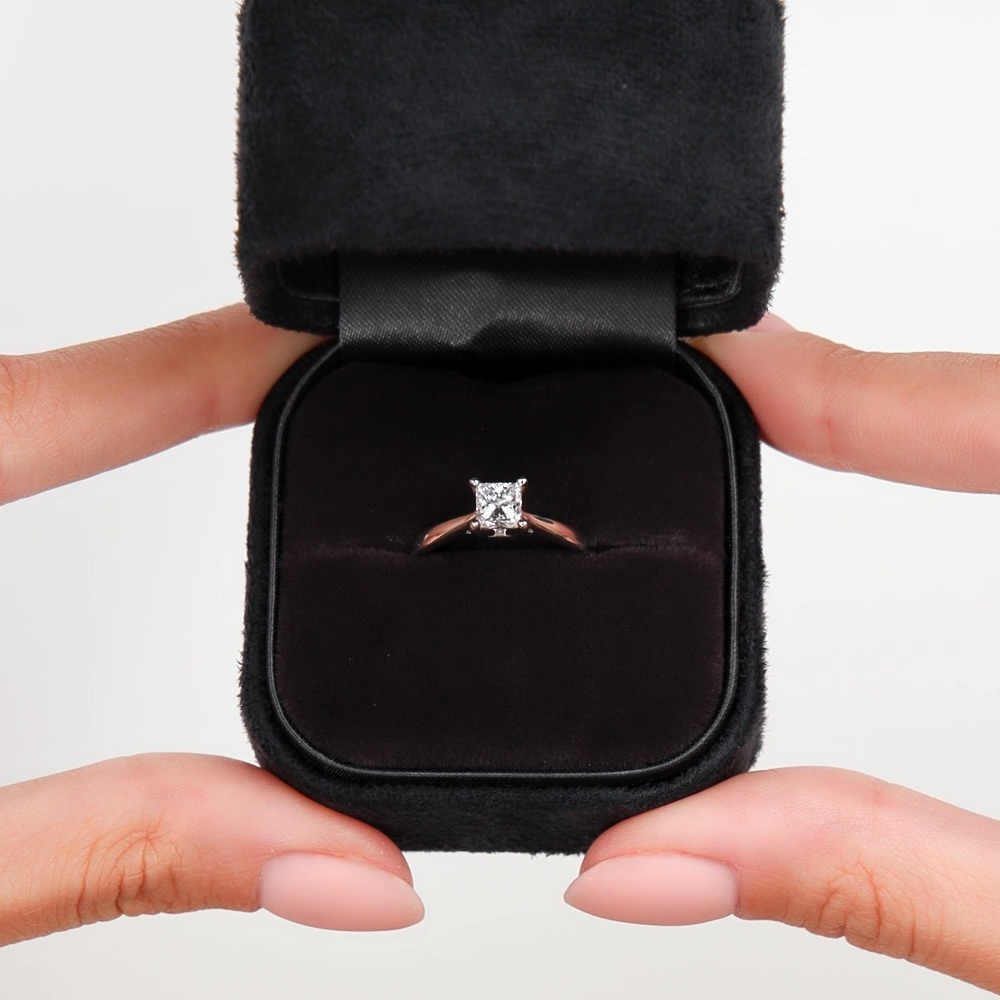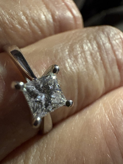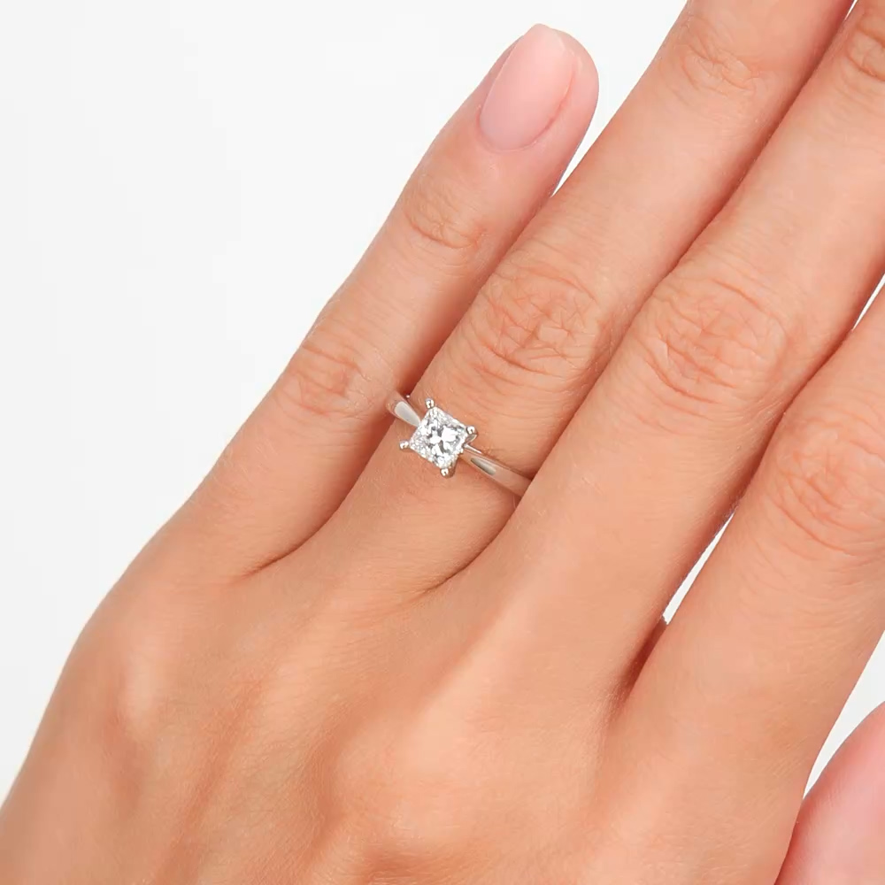 Кольцо с 1 бриллиантом природным, 0.5 карат, огранка принцесса 65 граней, цвет 4, чистота 6, тип огранки А;