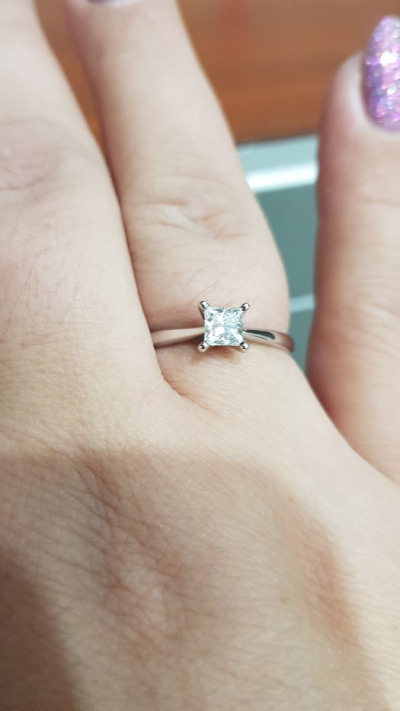 Выбирала 2 месяца, честно пыталась купить дешевле, но, это любовь с первого взгляда! Каратность 0,53 чистота 2/6.