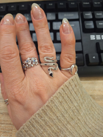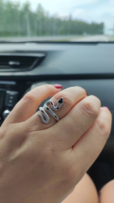Очень оригинальное кольцо. Смотрится круто. Просто моя мечта! Давно искала колечко в виде змейки. Это самое лучшее. Любовь с первого взгляда!