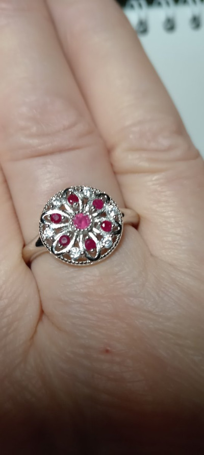 Прекрасное кольцо с натуральными рубинами. Выполнено оригинально. Узор на кольце сделан в стиле восточного орнаметра. На пальце сидит удобно. Понравилось.