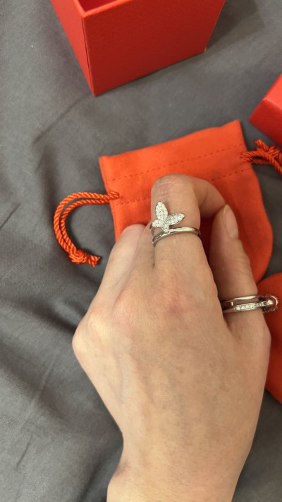 Искала кольцо с конкретным запросом «бабочка в камнях». Как только увидела, сразу заказала. Вживую оно даже красивее. Камушки все на месте. Очень нежно смотрится! Рекомендую