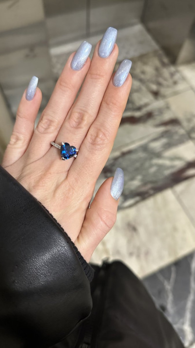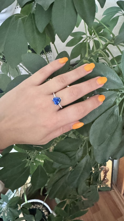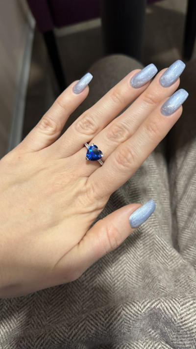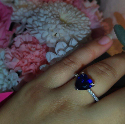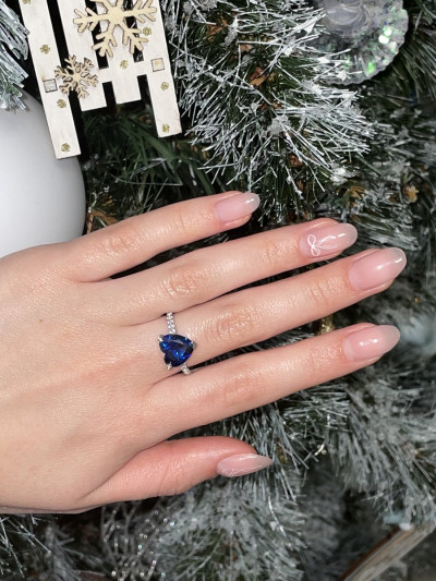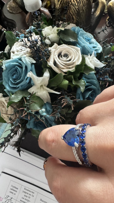 Красивое изящное колечко с синим камнем виде сердечка брала в дополнение к другому