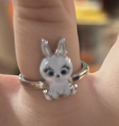Колечко самый маленький размер девочке 2 года большевато немного, но все равно она довольна. Милейшее колечко)