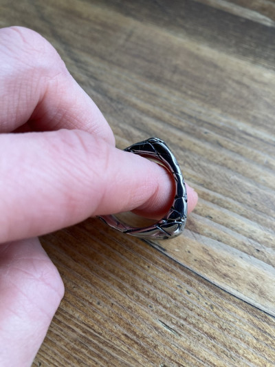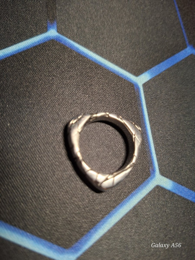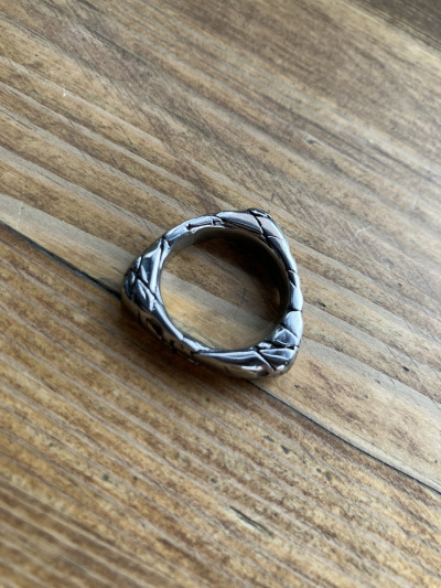 Оригинальная форма кольца. Использовала изделие, как подвеску. Хорошо смотрится на свитере темного цвета. Можно докупить второе, будет комплект.