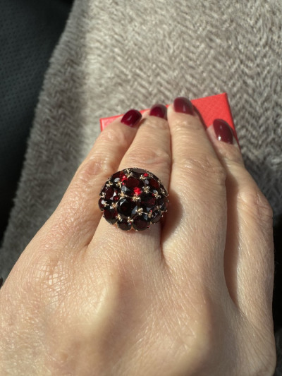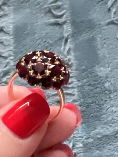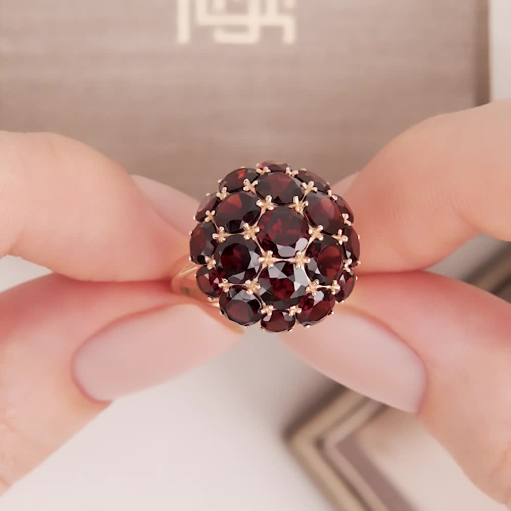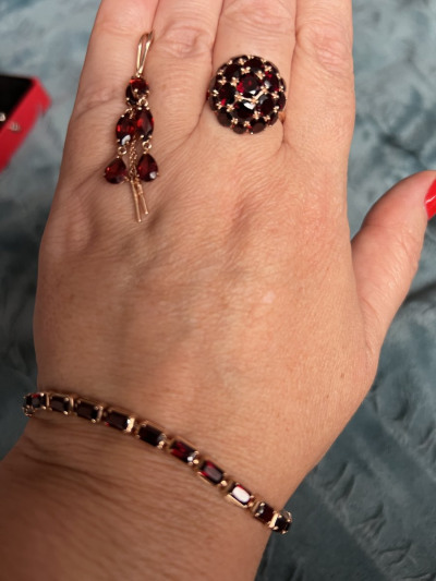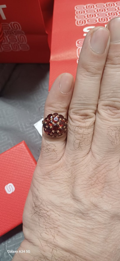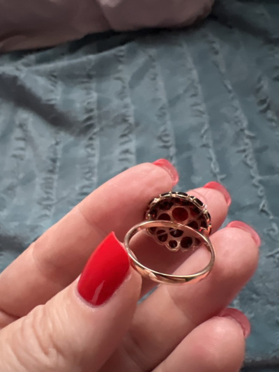 В редких случаях характеристики украшения или упаковка могут иметь отличия от представленных на фото или в описании.Кольцо с 6 гранатами природными, тип огранки В;