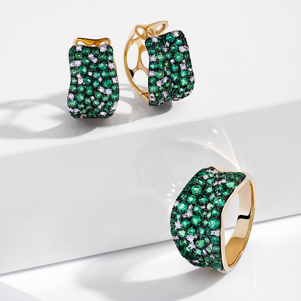 Кольцо «Бриллианты Якутии» с 63 изумрудами гидротермальными, 1.934 карат;