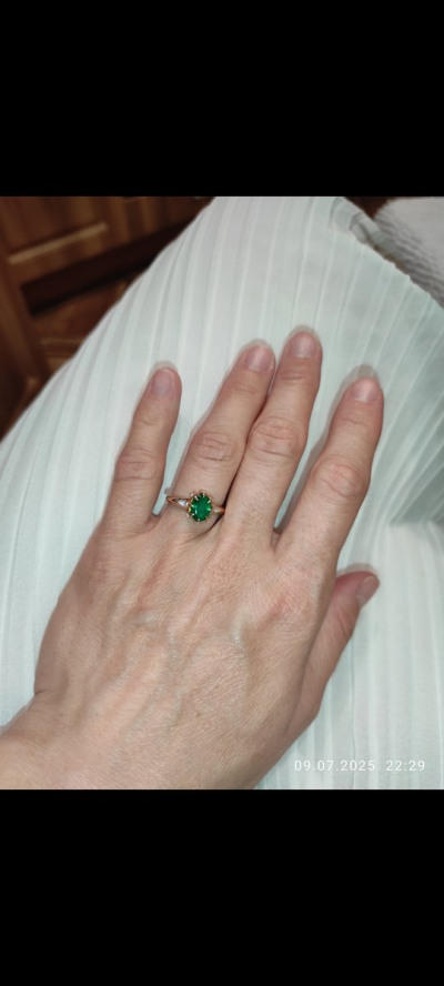 Очень нарядное кольцо! Изумруд просто светится на солнце! Камень очень красивый с вкраплениями, яркий, сразу понятно, что натуральный! Вес кольца даже больше заявленного! Спасибо SUNLIGHTy за такие бонусы и скидки! Покупкой очень довольна!❤️🩹