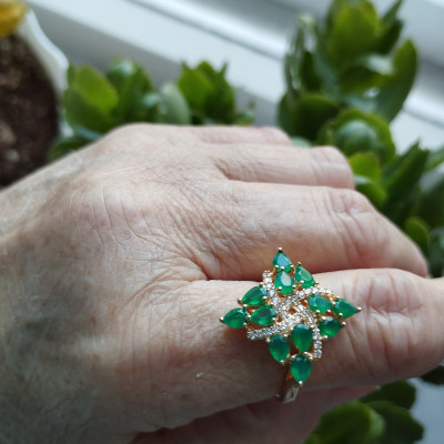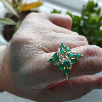 Очень красивое колечко ,камешки сияют, но у меня оно цепляется за одежду ,,постоянно носить не получится хотя оно красивое
