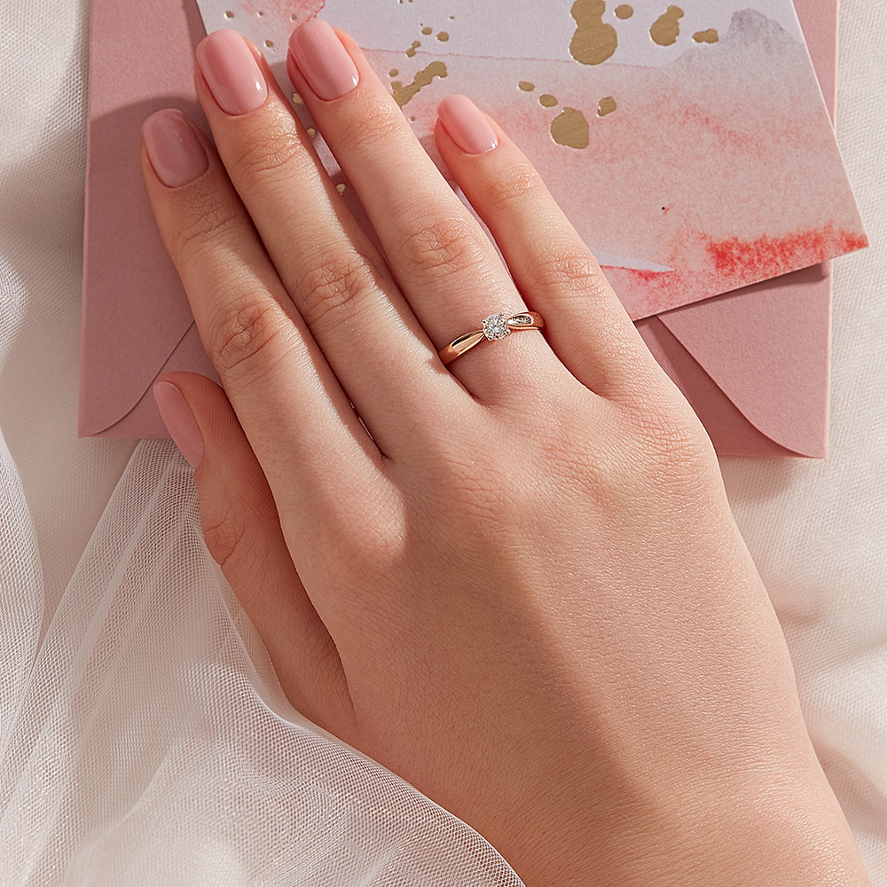 Кольцо «Бриллианты Якутии» с 1 бриллиантом весом 0,17 карата. Оно имеет круглую огранку с 57 гранями, что придает ему блеск и сияние. Цвет камня — 3, а его чистота — 6.