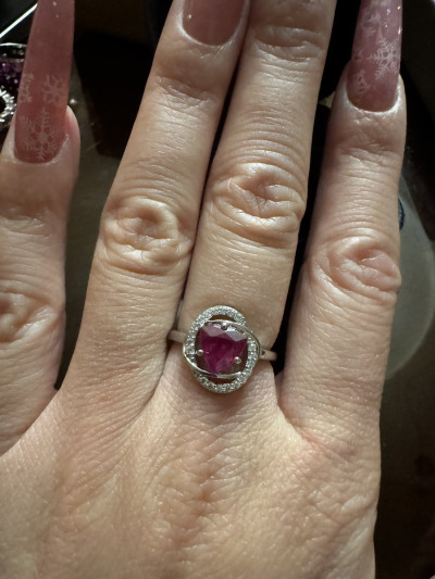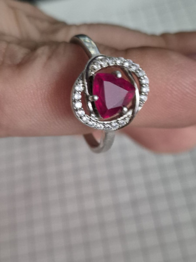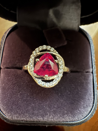 Колечко с рубином в обрамлении фианитов,красивая форма огранки камня,изделие понравилось,спасибо.